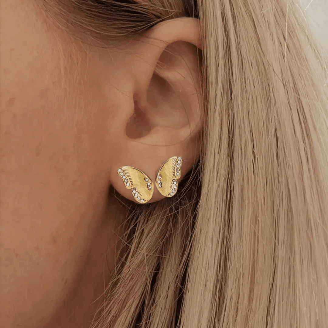 La farfalla è montata su un perno e dispone di un tappo in plastica trasparente per evitare che si perda. Grazie al suo design leggero e confortevole, questo orecchino è perfetto per l'uso quotidiano e per qualsiasi occasione.